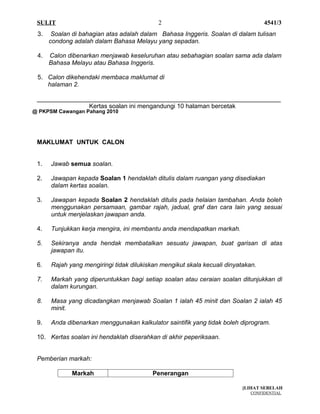 Calon yang tidak dapat menduduki mana-mana kertas peperiksaan bertulis atau melaksanakan ujian lisan khusus calon persendirian akan dianggap TIDAK HADIR bagi mata pelajaran berkenaan. Contoh Soalan Dan Jawapan Sejarah Kertas 3 SPM 2013 CIKLAILI. Kertas ujian kimia tingkatan 4.